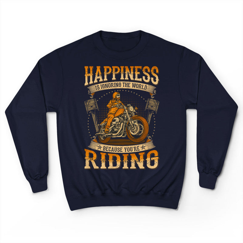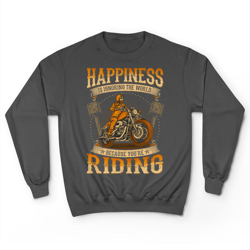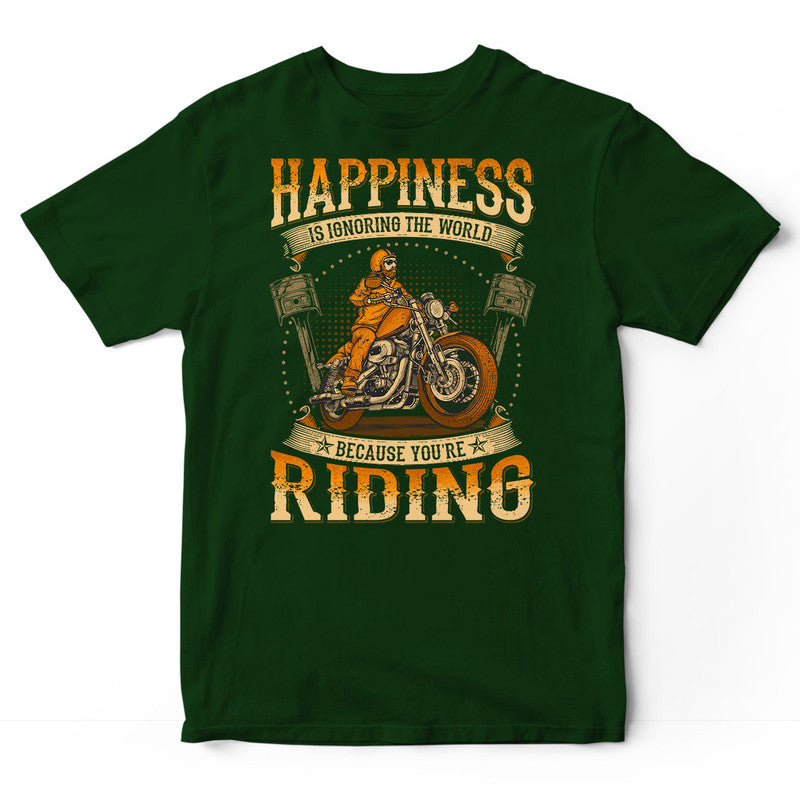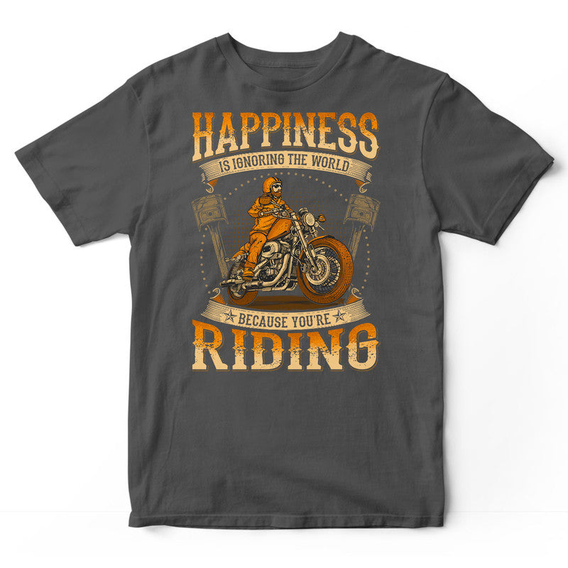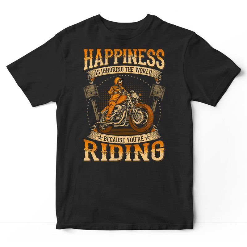 Biker Happiness Is Ignoring The World T-Shirt WDC044. Surprise your family and friends today and get this shirt as a gift!