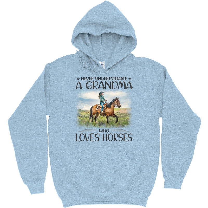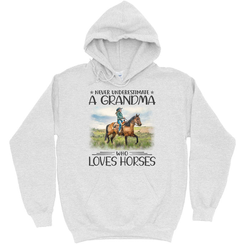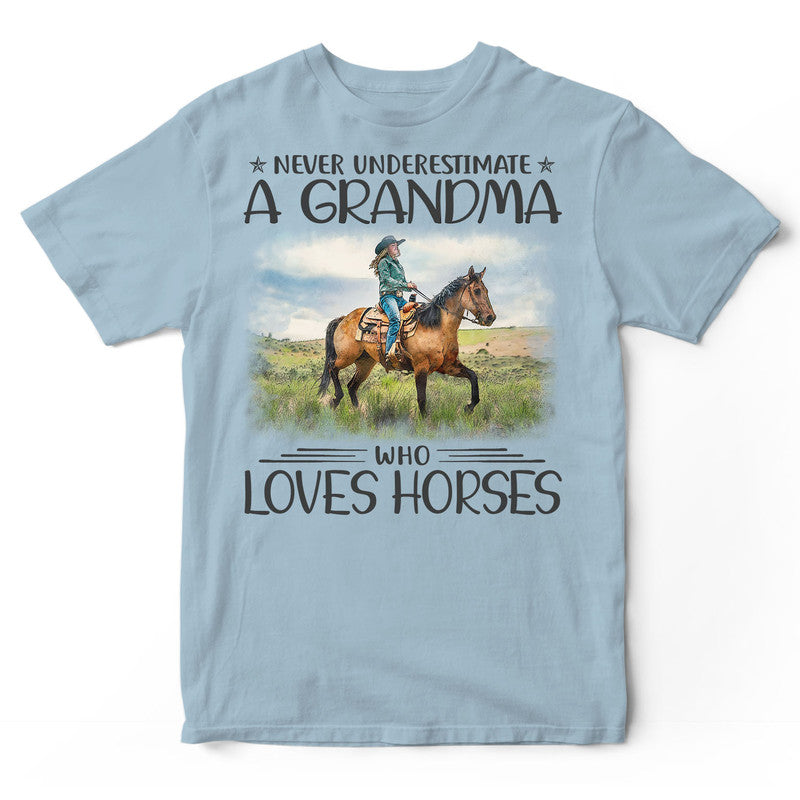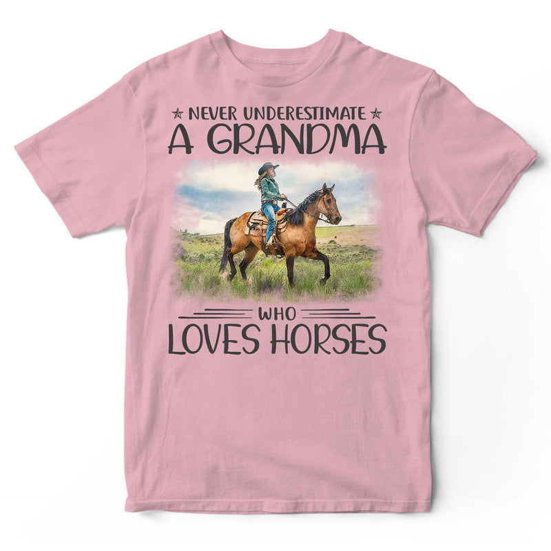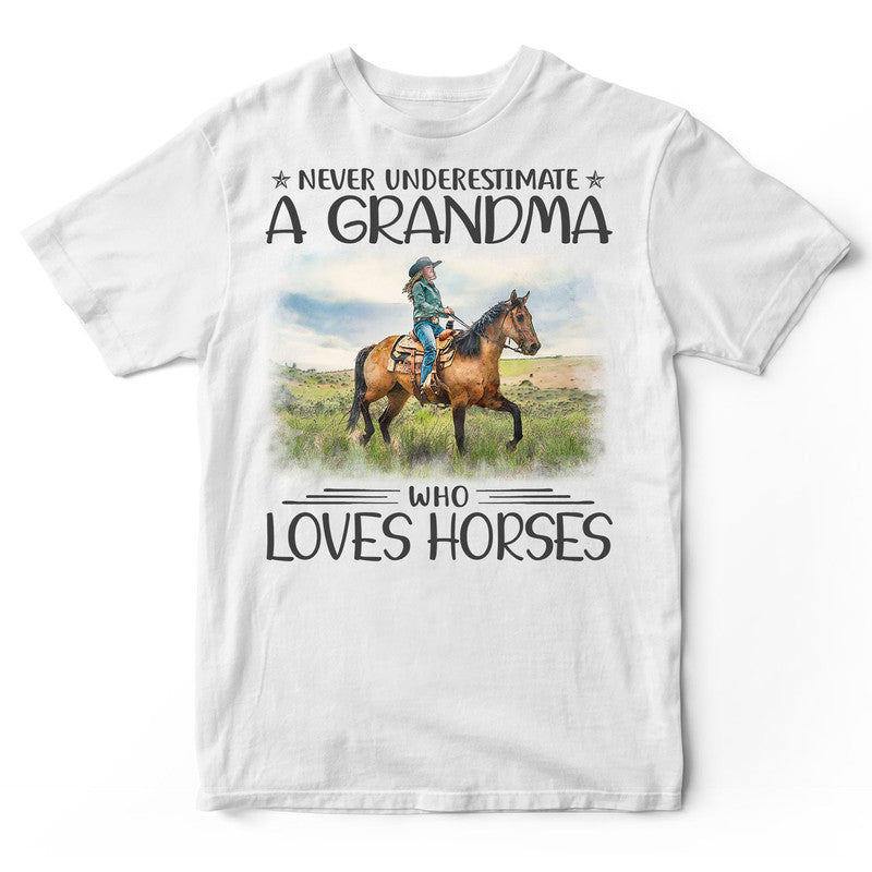 Horse Never Underestimate Grandma T-Shirt HWA400. Surprise your family and friends today and get this shirt as a gift!