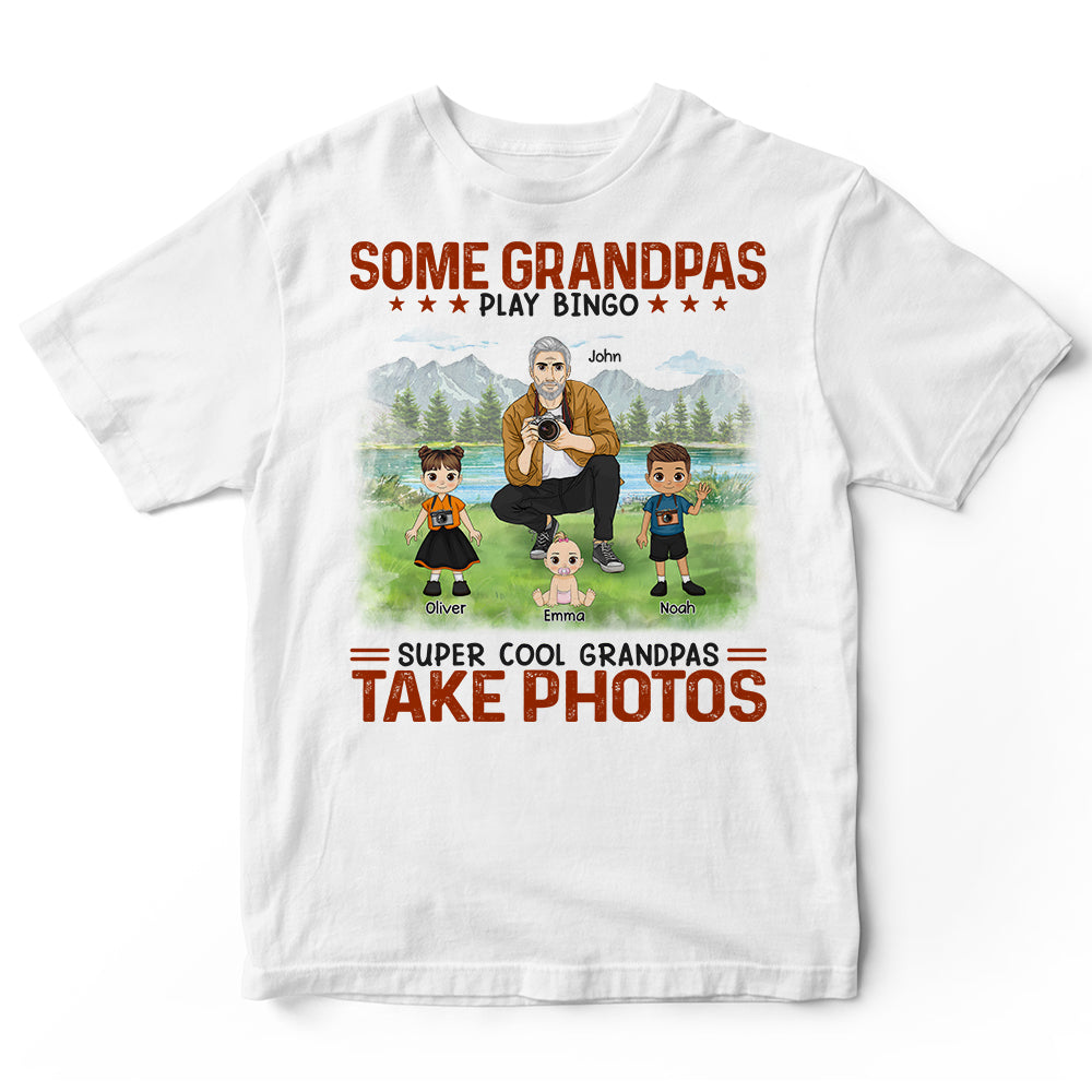 Personalized Photography Grandpas Bingo T-Shirt. Surprise your family and friends today and get this shirt as a gift!